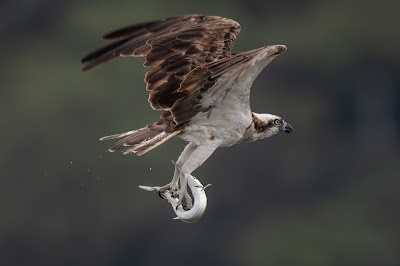 ダツの体型は細長く、サヨリに似ていますが、サヨリとは異なり上下のアゴが前方に長く伸びその内側には鋭い歯が生えています。この画像は、ミサゴに捕獲されたダツがその鋭い歯でミサゴの足に噛みつき反撃をしているシーンです。